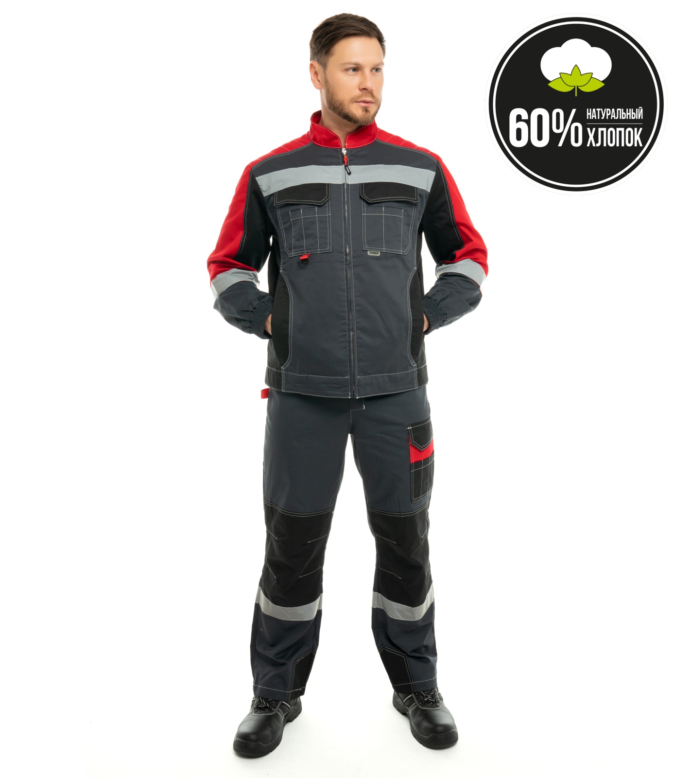 Костюм «Формула Коттон» куртка / брюки темно-серый, чёрный, красный