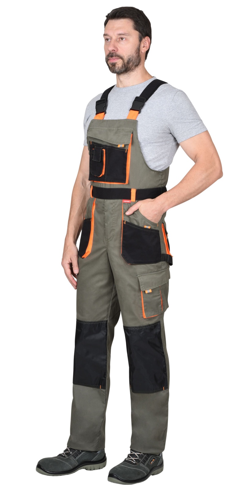 Полукомбинезон "МАНХЕТТЕН" оливковый с оранжевым и черым, тк. мех. стрейч