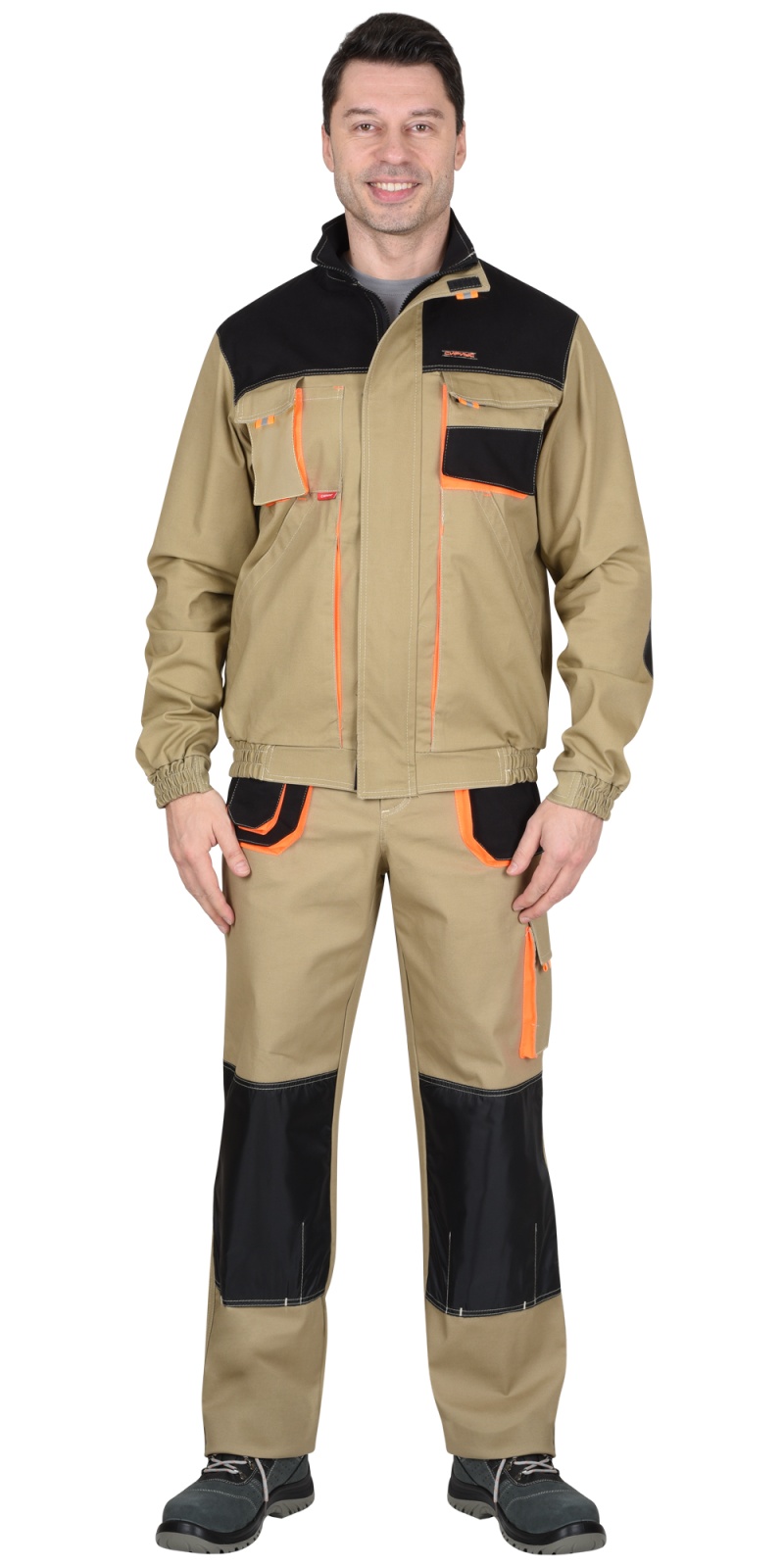 Полукомбинезон "МАНХЕТТЕН" песочный с оранжевым и черным, тк. стрейч