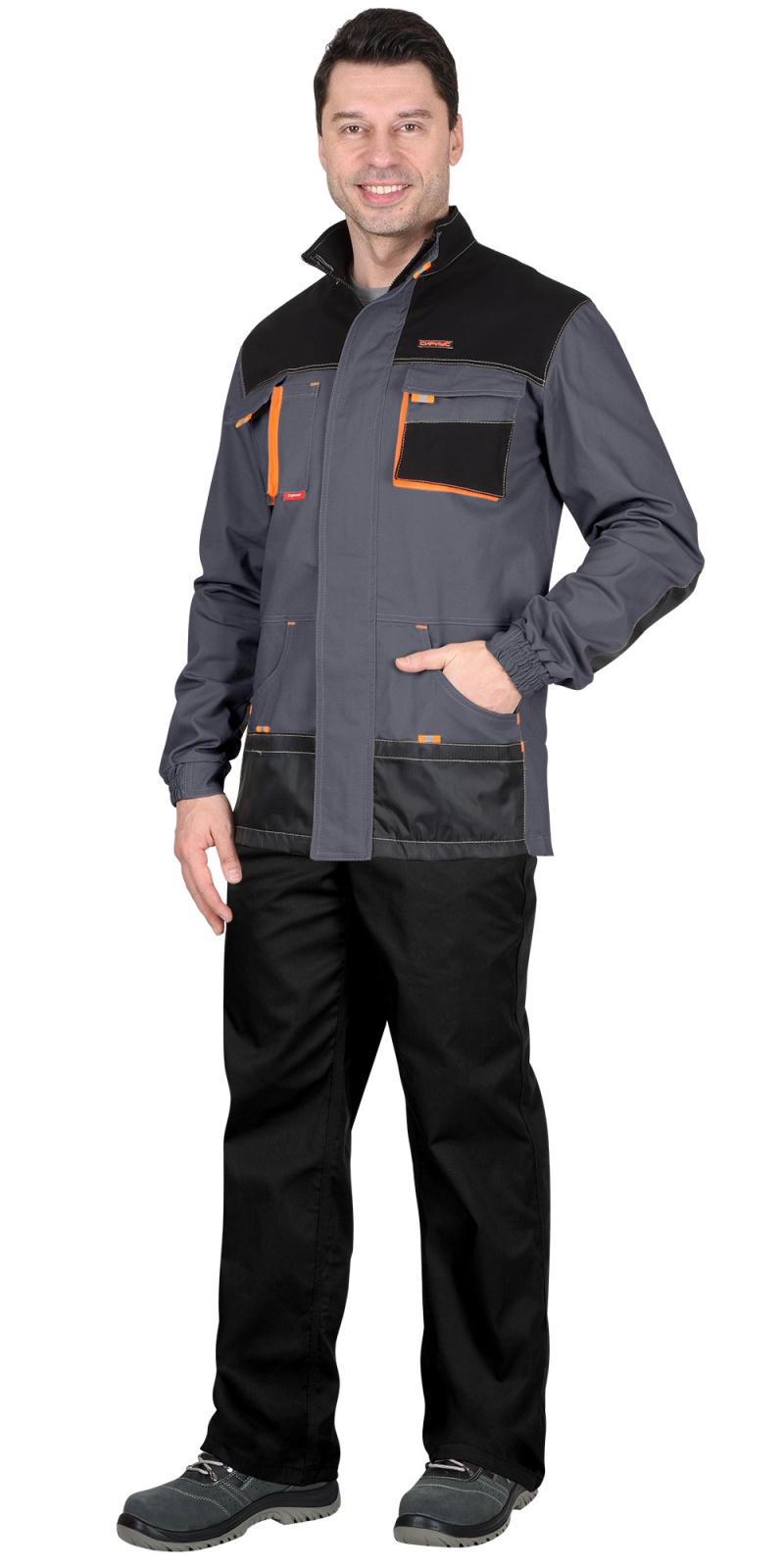 Куртка "Манхеттен" тёмно-серая с оранжевым и черным, тк. стрейч удлинённая