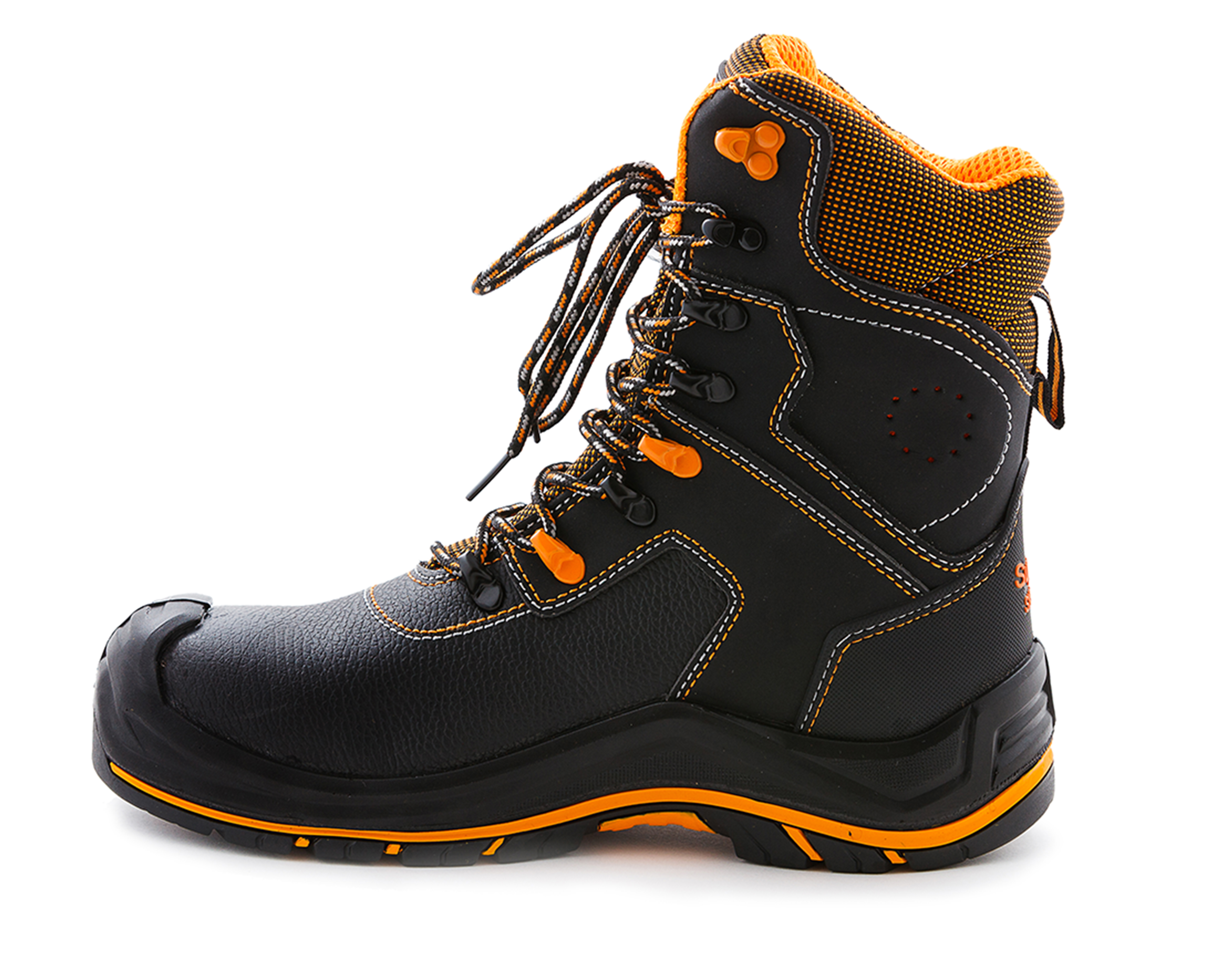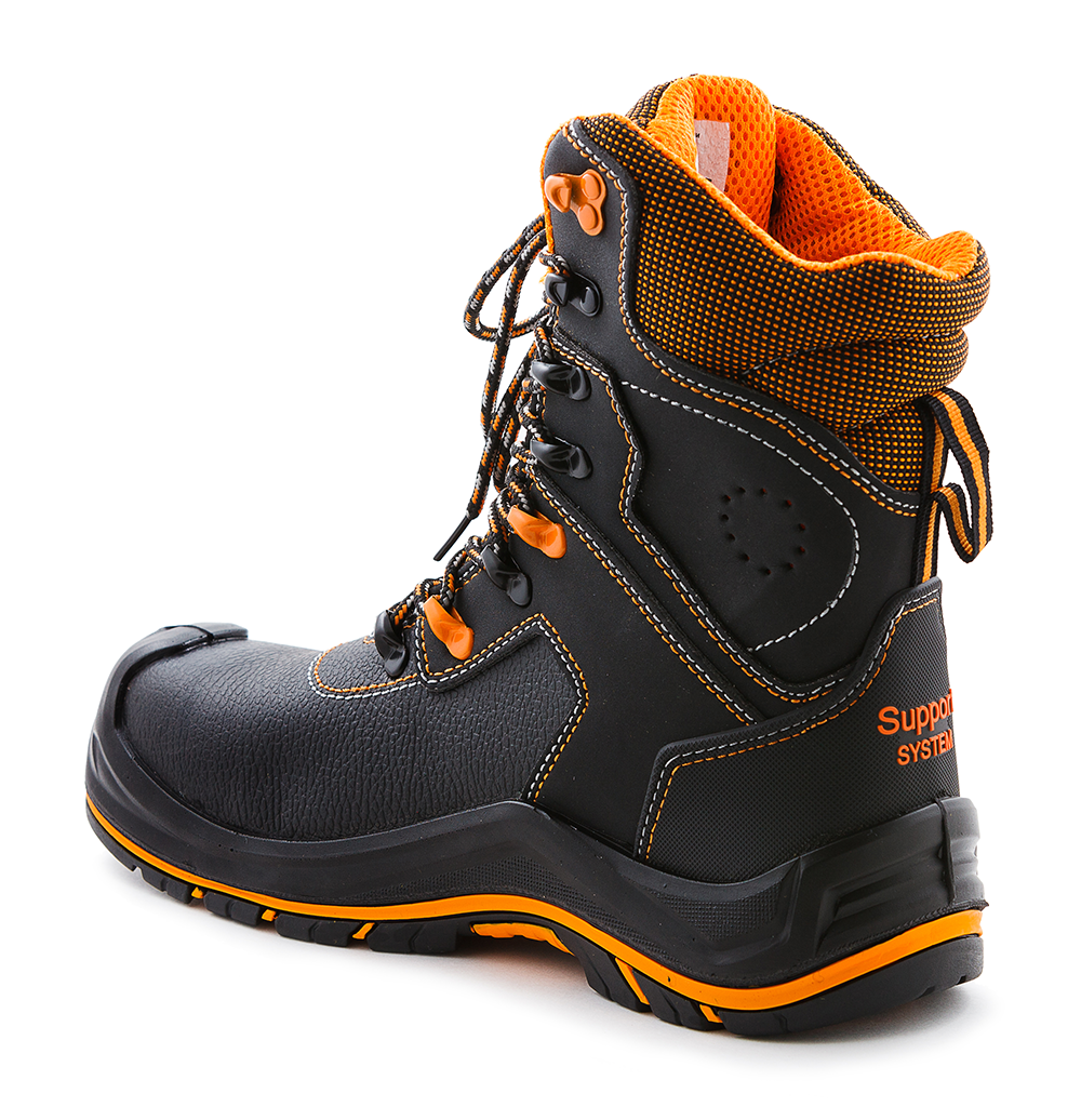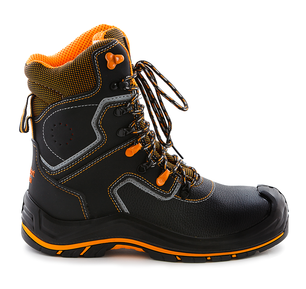 В ботинках с высоким берцем «PERFECT PROTECTION» размещен внутренний укрепленный поликарбонатный подносок, выдерживающий нагрузку до 200 Дж. Модель отличается высокой износостойкостью. Рисунок протектора подошвы обеспечивает хорошее сцепление с поверхностью пола. Новая двухслойная подошва изготовлена из полиуретана/резины (на основе натурального каучука) и обладает повышенным сопротивлением к скольжению.