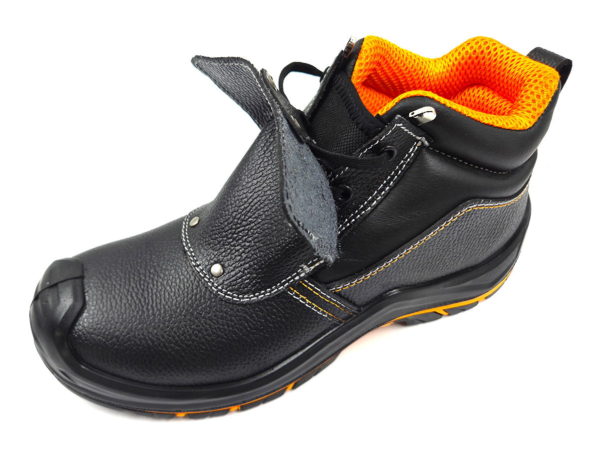 Ботинки "Сварщика" отлично подойдут для использования при сварочных работах. Обувь изготовлена методом прямого литья. Защитный кожаный клапан защищает шнуровку и фиксируется ремешком с пряжкой. Носок из поликарбоната обеспечивает защиту от ударов в носочной части 200 Дж и проколов. Верх обуви выполнен из термостойкой водоотталкивающей кожи толщиной 1,8 - 2 мм, со специальным покрытием, которое защищает от контактов с агрессивной средой: нефти, растворов кислот и щелочной концентрации до 20%, общих производственных загрязнений. Подошва двухслойная (полиуретан и нитрильная резина), устойчива к контакту с нагретой поверхностью до 300 градусов Цельсия, с улучшенным сопротивлением к скольжению и деформациям. Металлическая антипрокольная стелька обезопасит стопу ноги от порезов и проколов.
