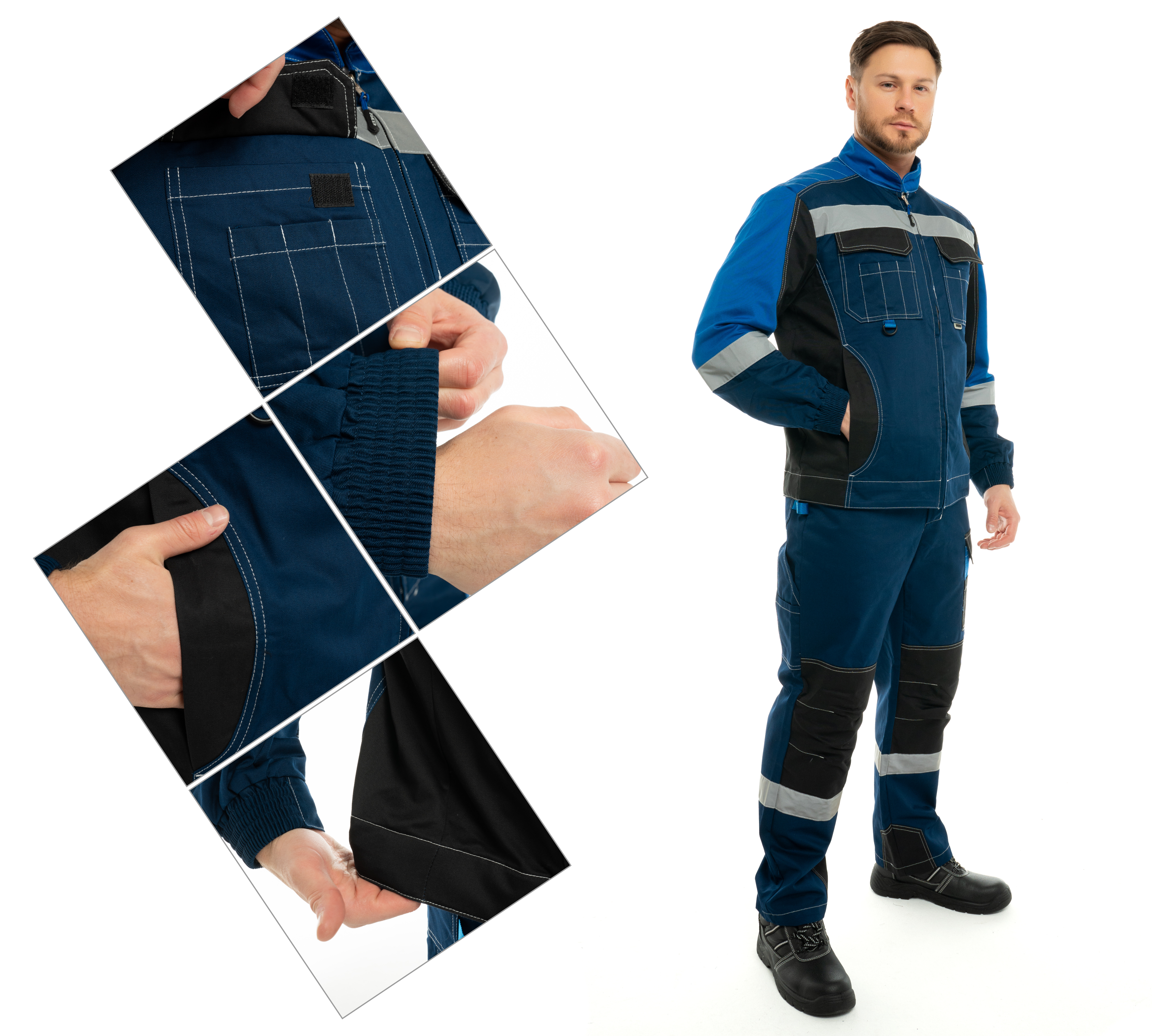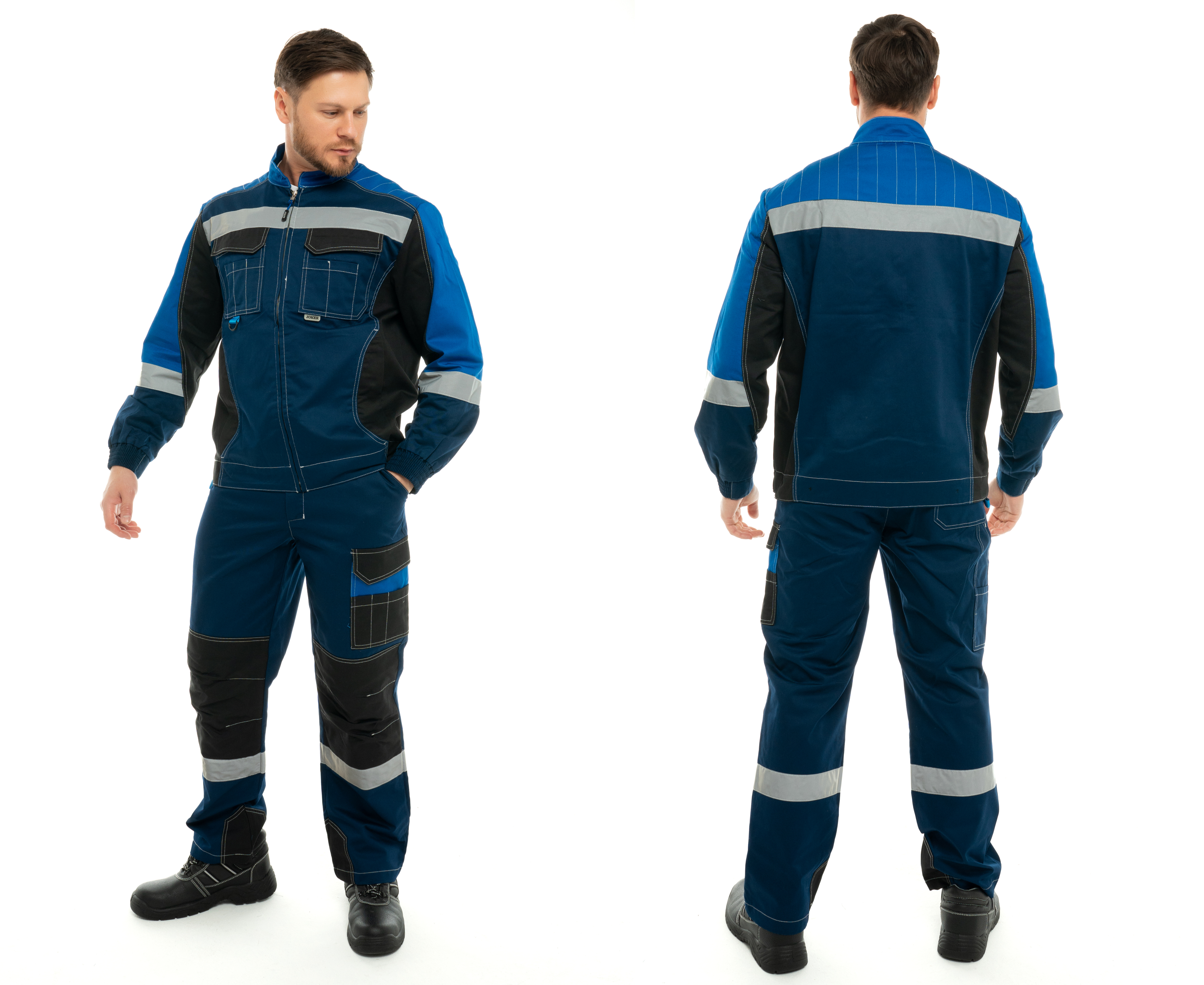 Костюм с контрастной отсрочкой, с застежкой на закрытую молнию.