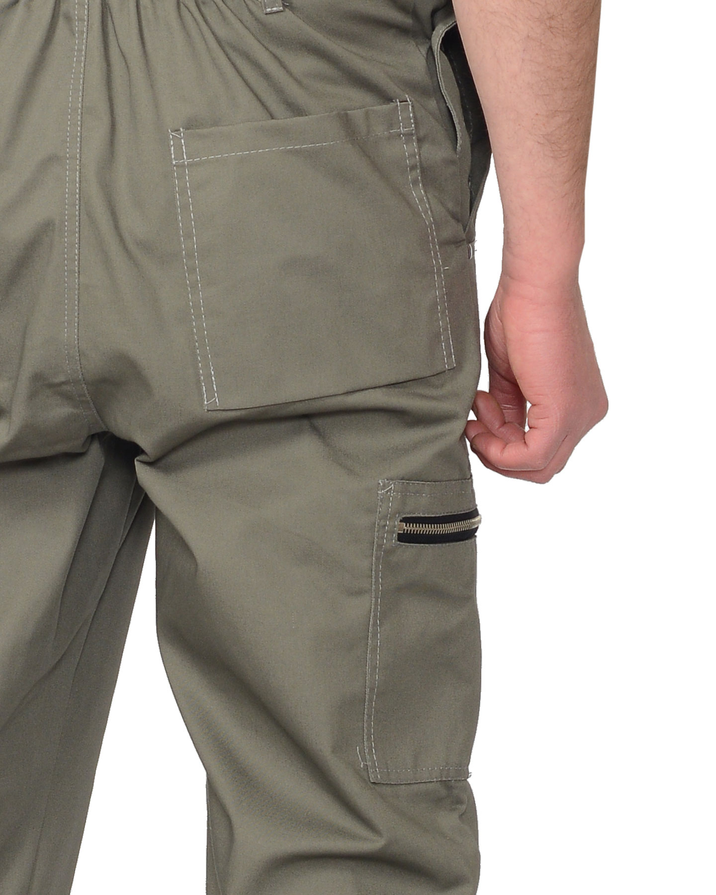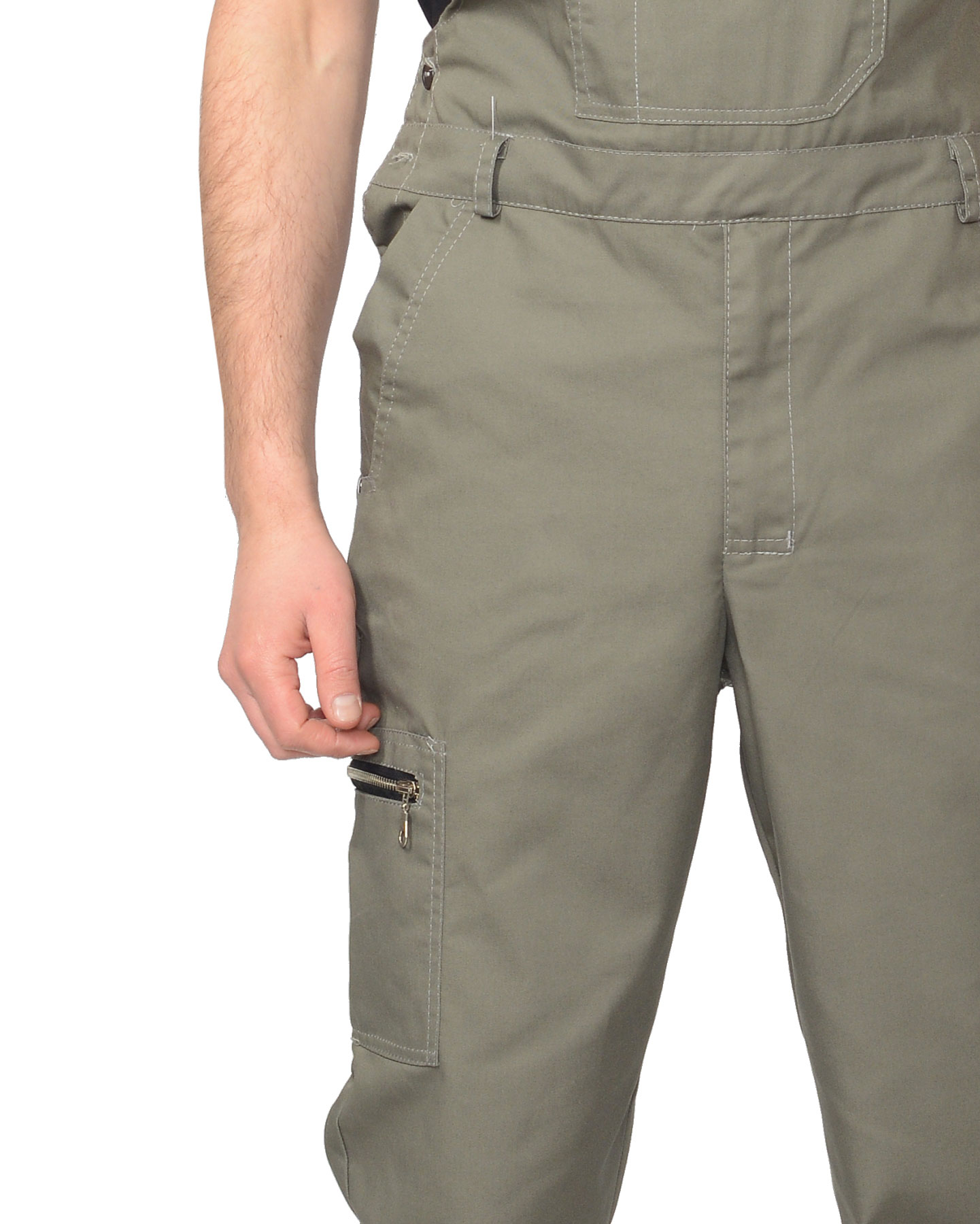 ПОЛУКОМБИНЕЗОН с застежкой гульфика на тесьму - «молния», с боковой застежкой на 3 петли и пуговицы. Передние половинки с внутренними боковыми карманами с «планками» с наклонным входом, нижние углы карманов закреплены закрепками отделочными нитками и хольнитенами. На нагруднике выполнен фигурный накладной карман, с клапаном застегивающийся на «липучку», на кармане сделано разделение под ручку. Задние половинки полукомбинезона с цельнокроеной спинкой с резинкой по спинке для лучшего прилегания, с двумя накладными карманами с нижним объемом. На правом боковом шве полукомбинезона настрочен карман, с горизонтальным входом в карман, застёгивающийся на металлическую тесьму «молнию».