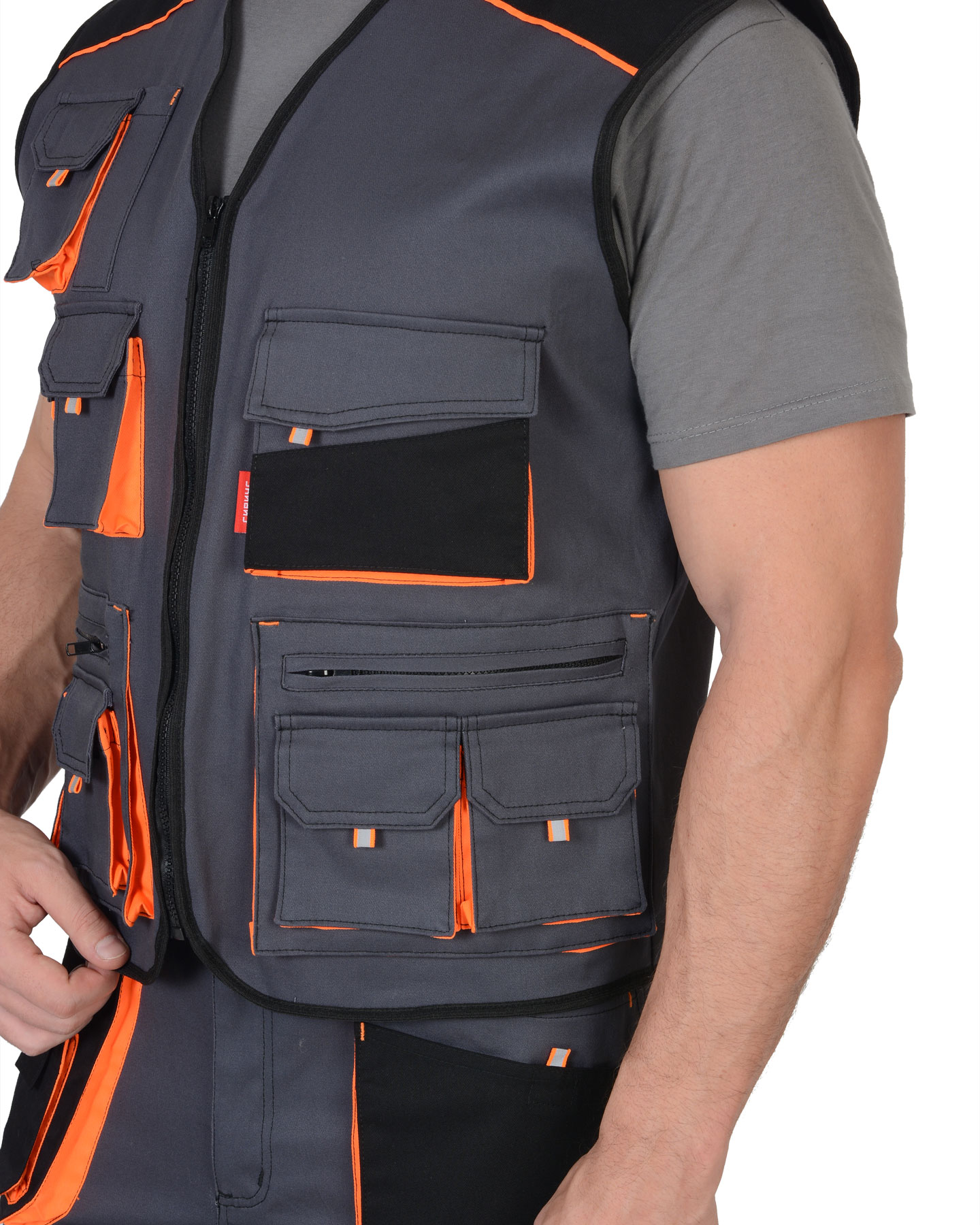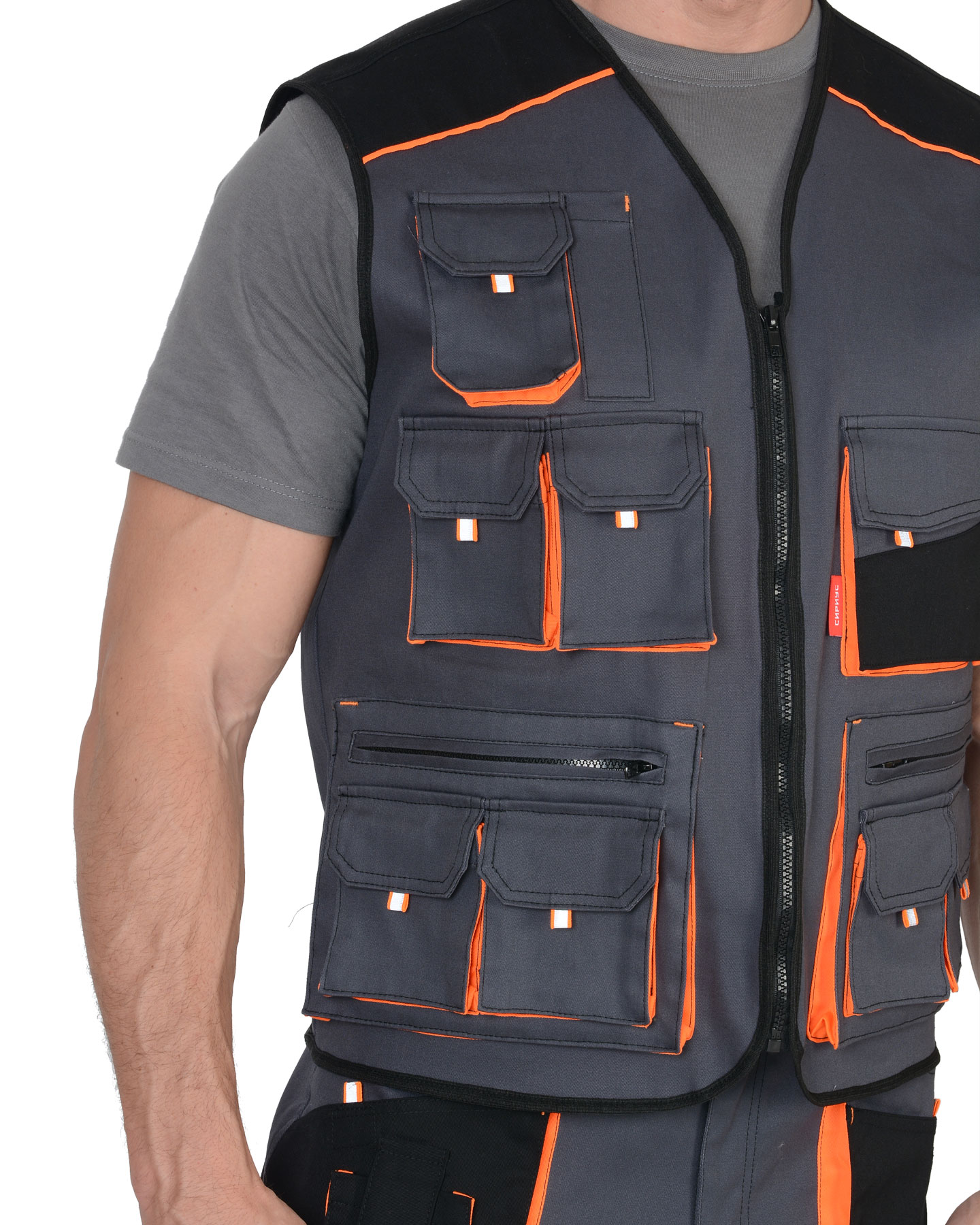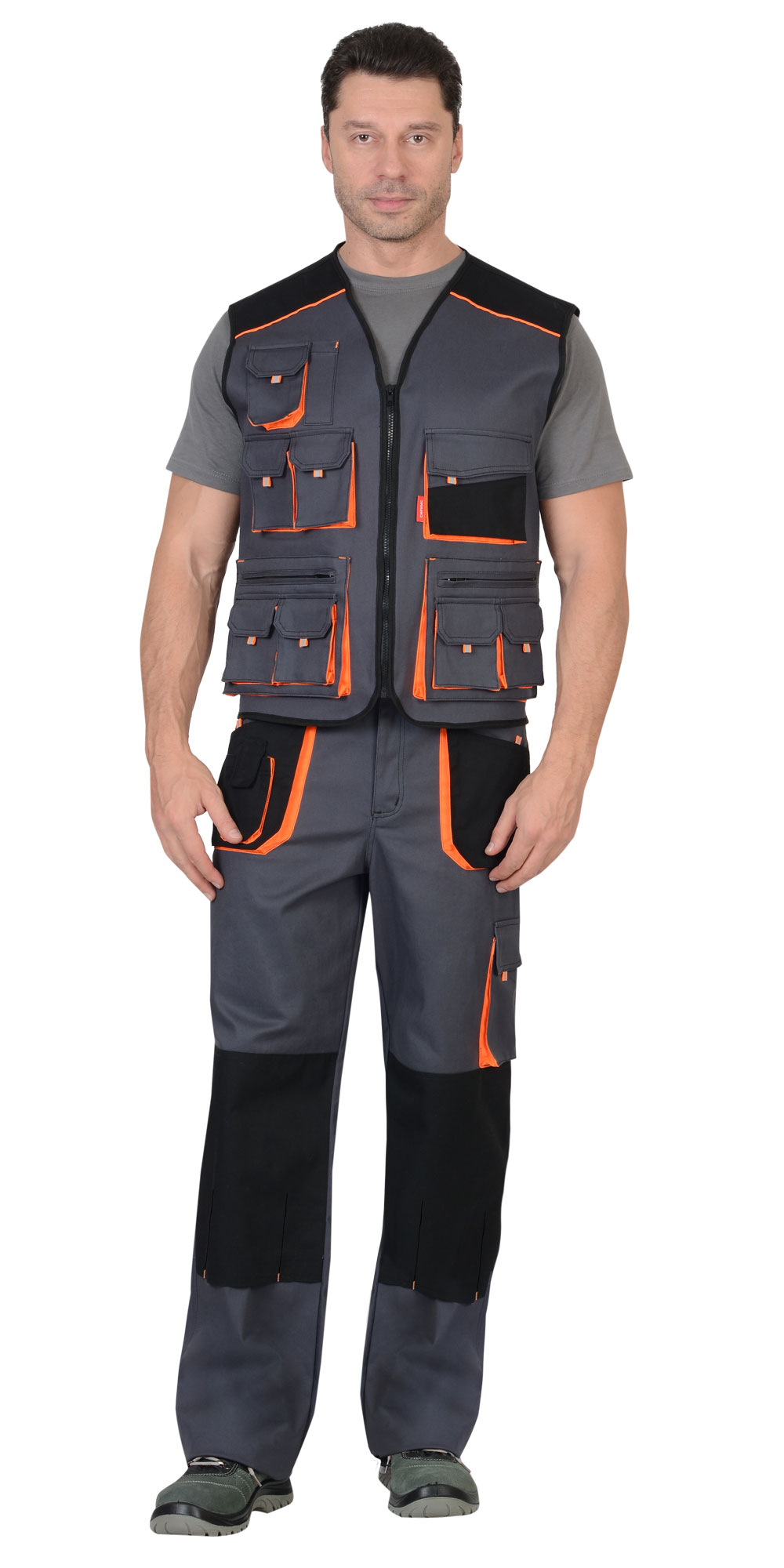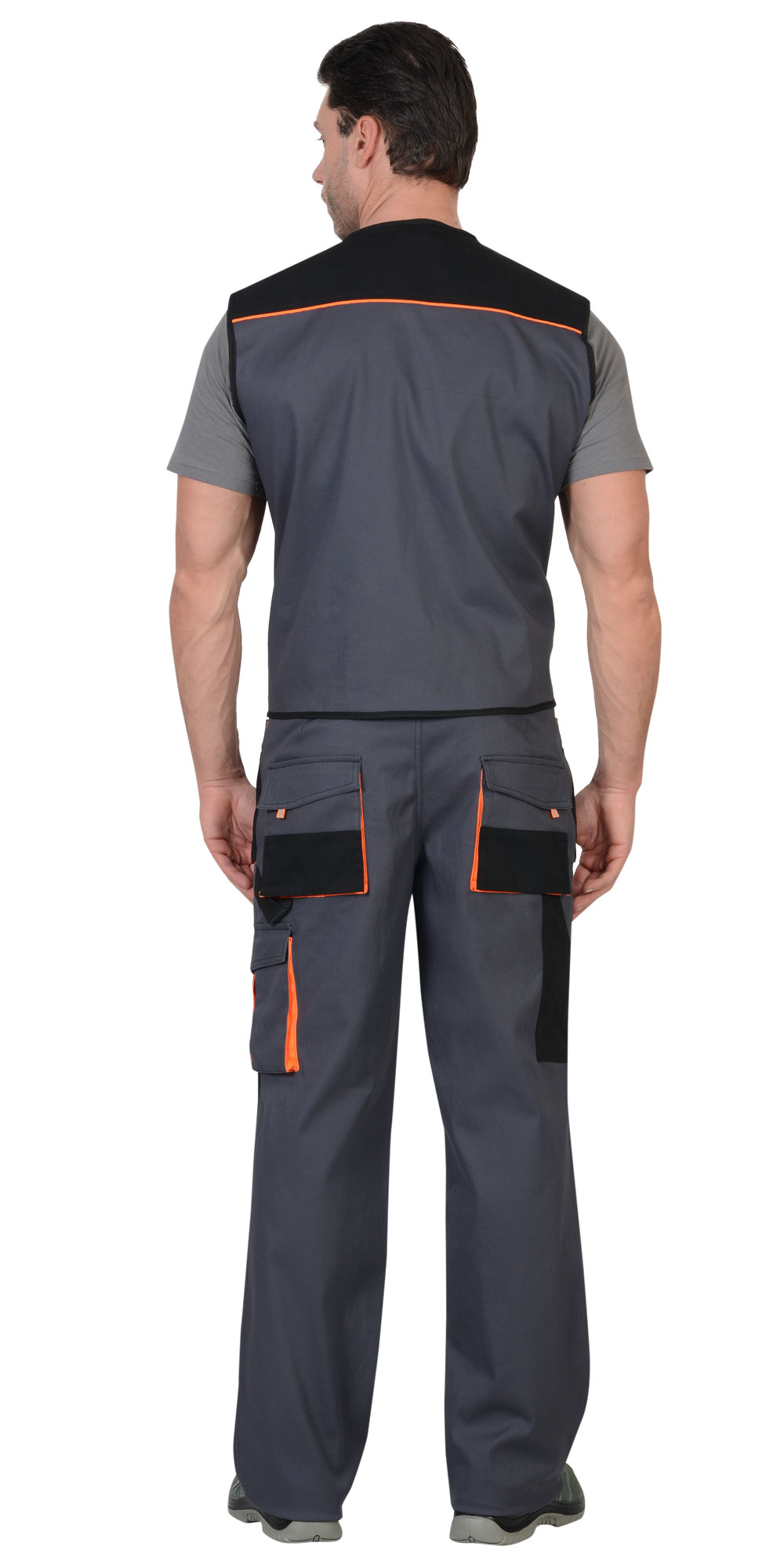 Жилет "Манхеттен" тёмно-серый с оранжевым и черным, тк. стрейч