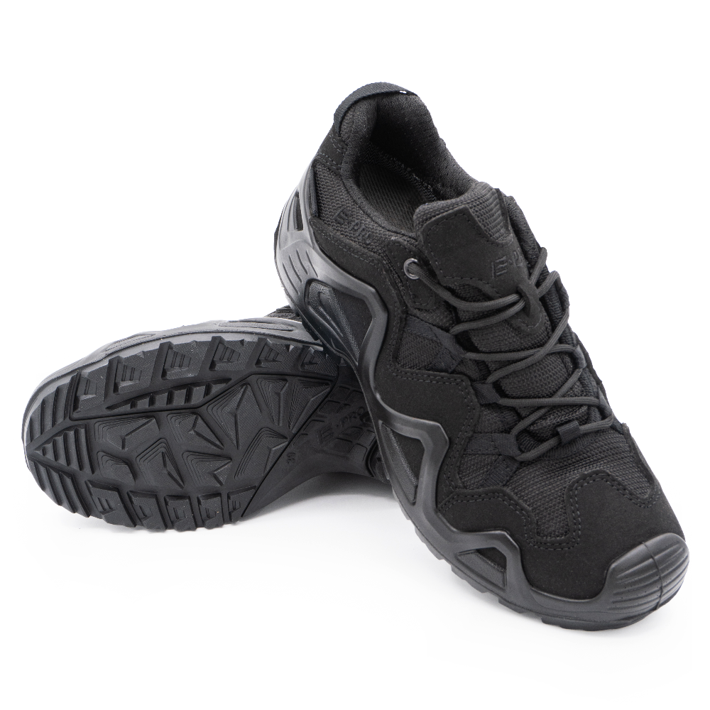 Серия обуви E-PRO — это одна из самых популярных в туристической и тактической обуви, используемая походниками, альпинистами, спортсменами, военными и сотрудниками правоохранительных органов. Линейка E-PRO Special представлена целым семейством моделей, отличающихся по цвету, высотой берца, а также наличием мембраны. Основной материал изготовления — высококачественная замша со вставками из кордуры. Наличие подкладки из мембраны делает обувь непромокаемой и одновременно дышащей, способной отводить испарения с поверхности стопы. Подлитой носок обеспечивает защиту от повреждений. Защитный рант с выборками для облегчения веса проходит по всему периметру и создает узнаваемый образ. Кроме основных функций, рант дает дополнительное сцепление с поверхностью, например, при движении вдоль склона. Высота среднего ботинка 14.5 см, этого хватает для отличной фиксации голеностопа. Все детали прошиты двойным швом, все швы сделаны крайне аккуратно. На пятке есть петелька, облегчающая надевание. Подошва имеет многослойную структуру. Промежуточный слой из полиуретана придает высокие амортизирующие свойства; ходовой слой из резины на основе натурального каучука делает подошву более износостойкой и способствует хорошему сцеплению с грунтом и другими плоскостями.